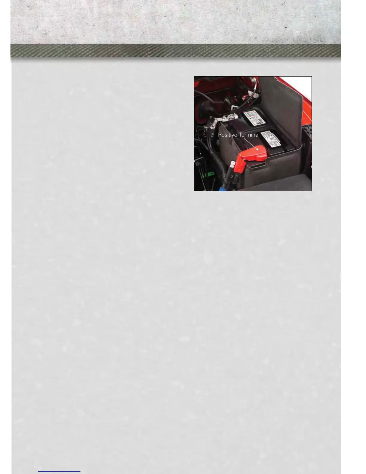 The positive battery post is covered with a protective cap. Lift up on the cap to gain