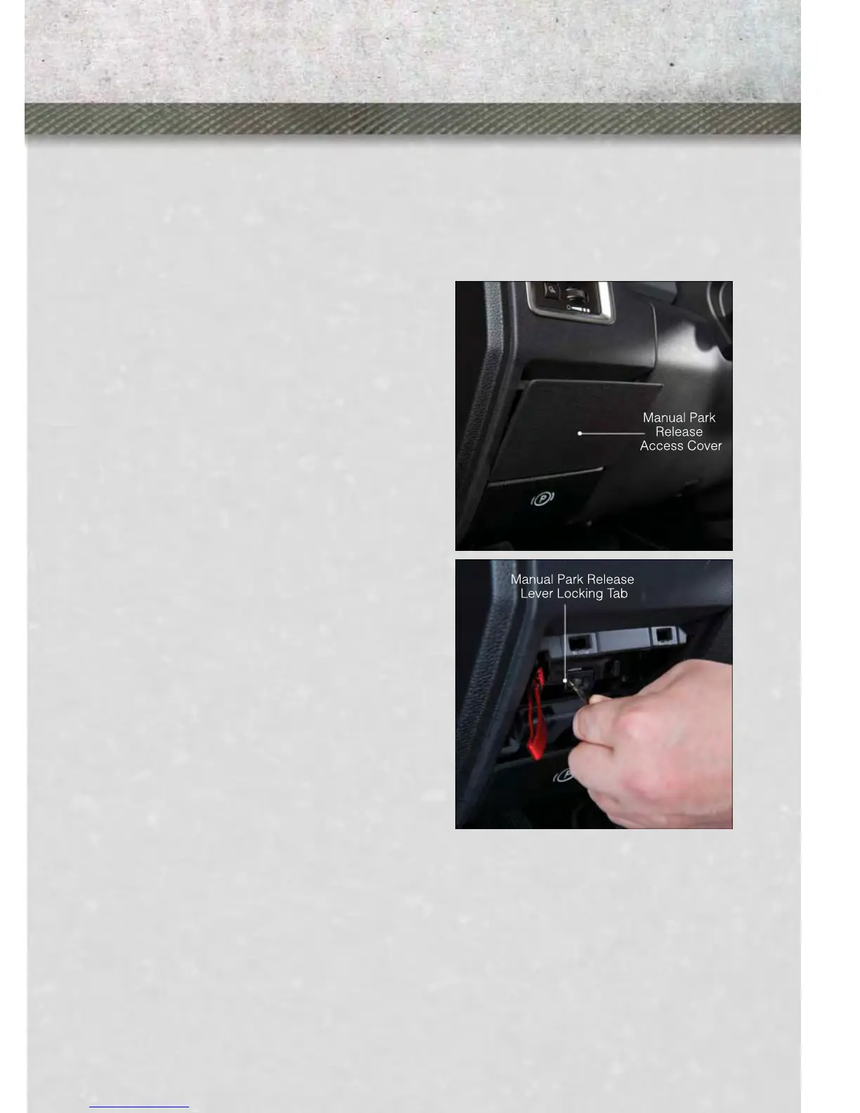 of PARK (such as a dead battery), a Manual Park Release is available.