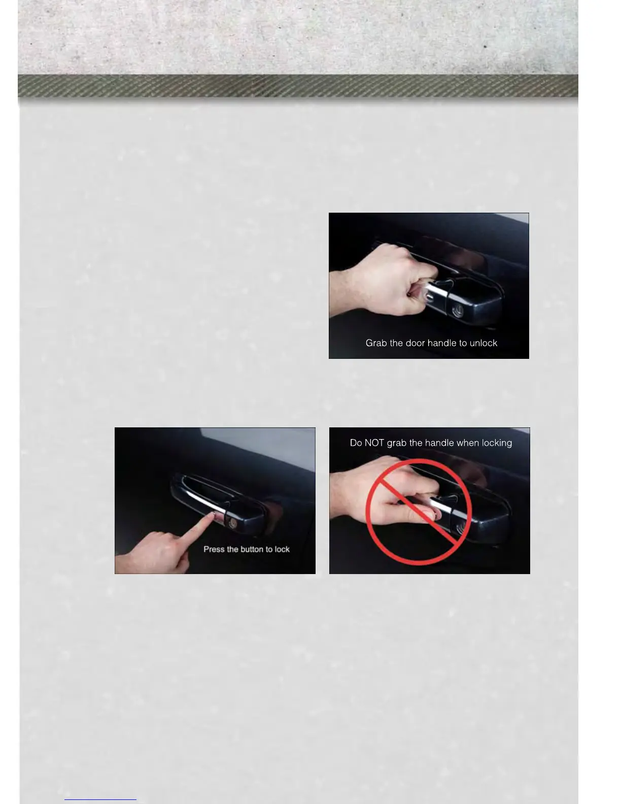 • DO NOT grab the door handle, when pressing the door handle lock button. This