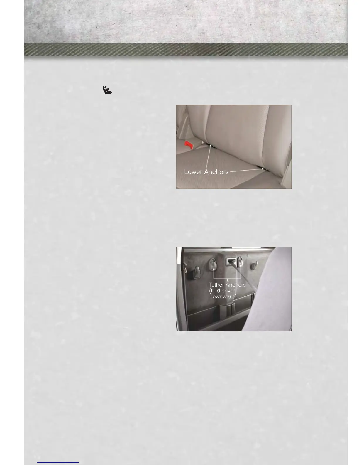 • The vehicle lower anchorages are round bars located at the rear of the seat cushion