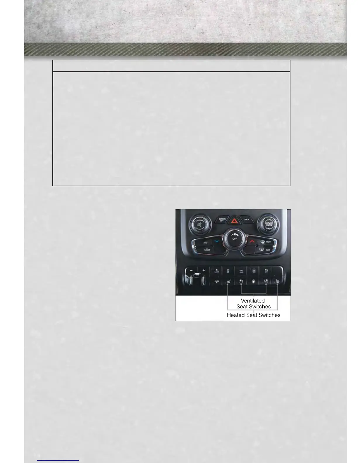 • The ventilated seat switches are located in the switch bank in the center stack of
