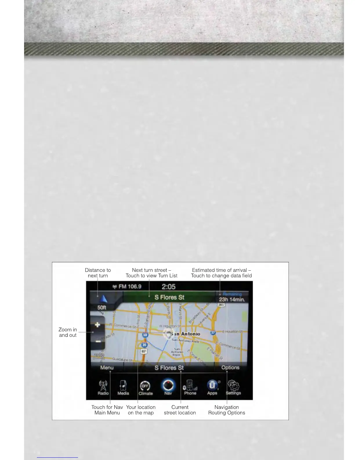 • Touch the NAV soft-key in the menu bar to access the Navigation system and the