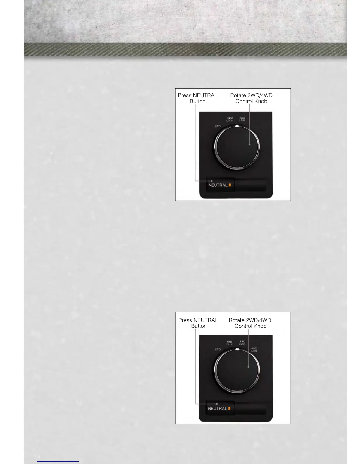 • Shifting between 2WD or 4WD LOCK into 4WD LOW must be made with the