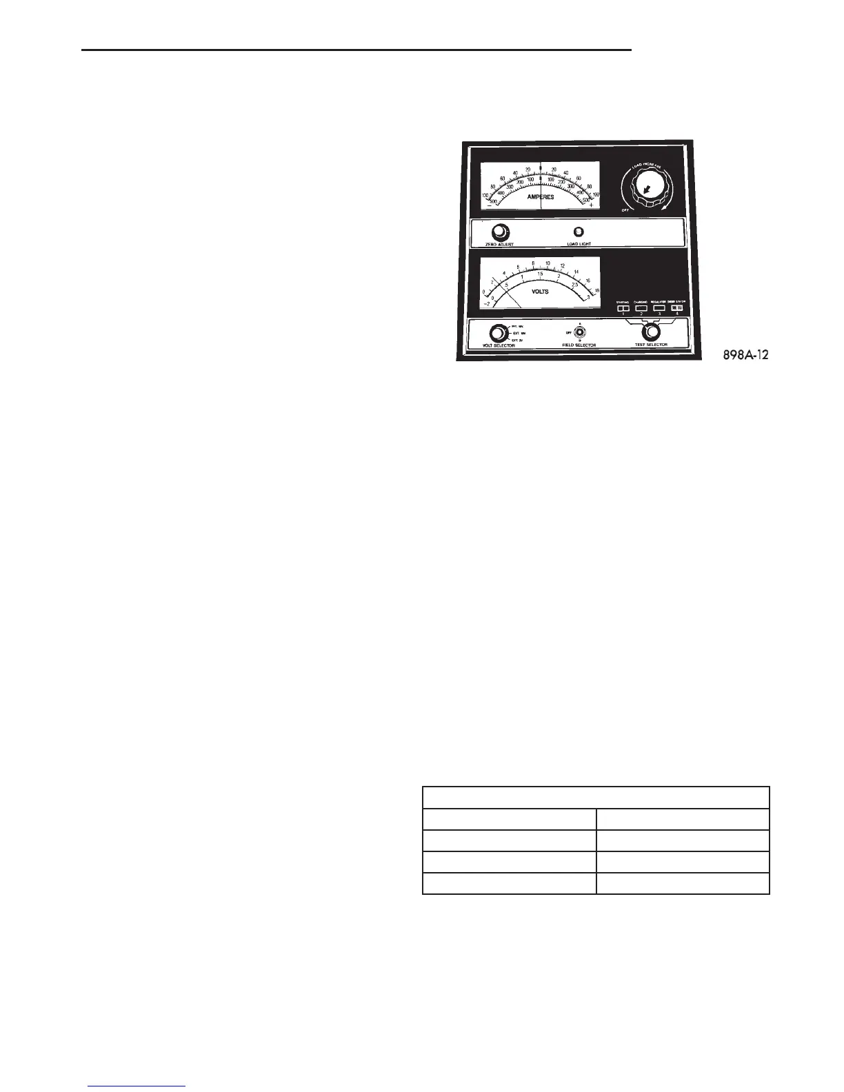 reading is below ten volts, the battery charging cur-