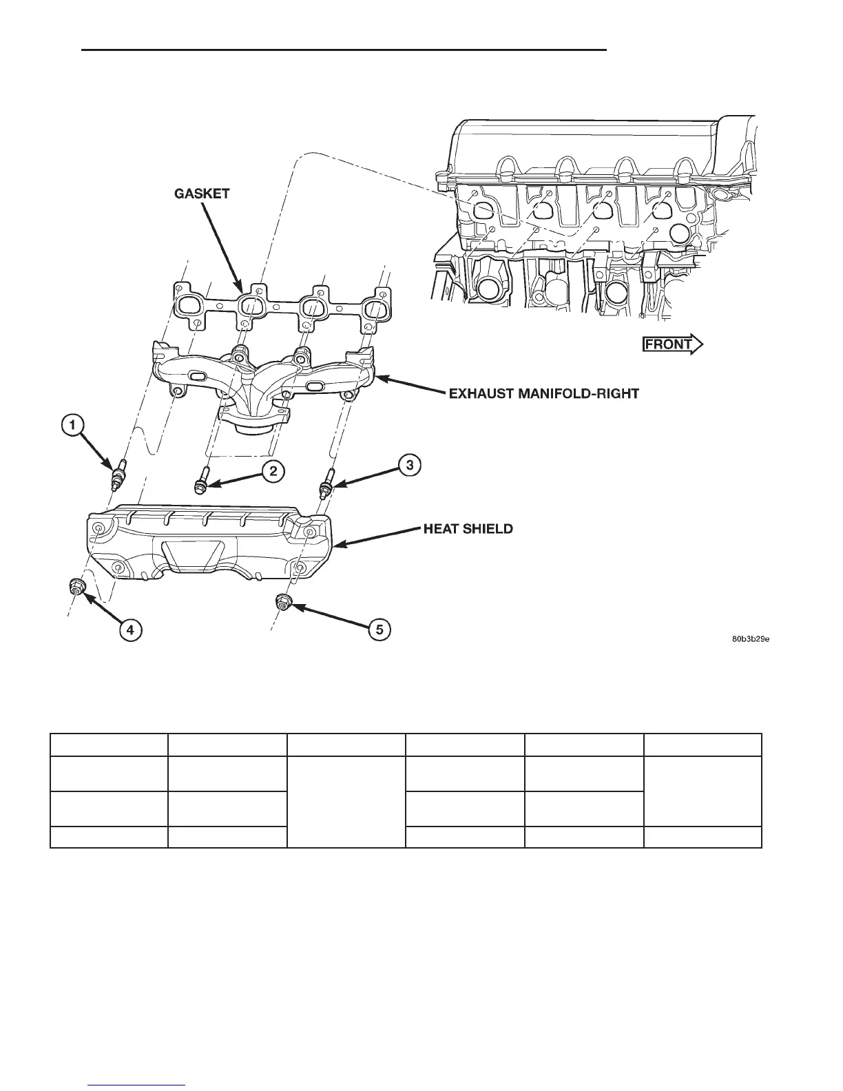 (1) Install exhaust manifold and gasket from below