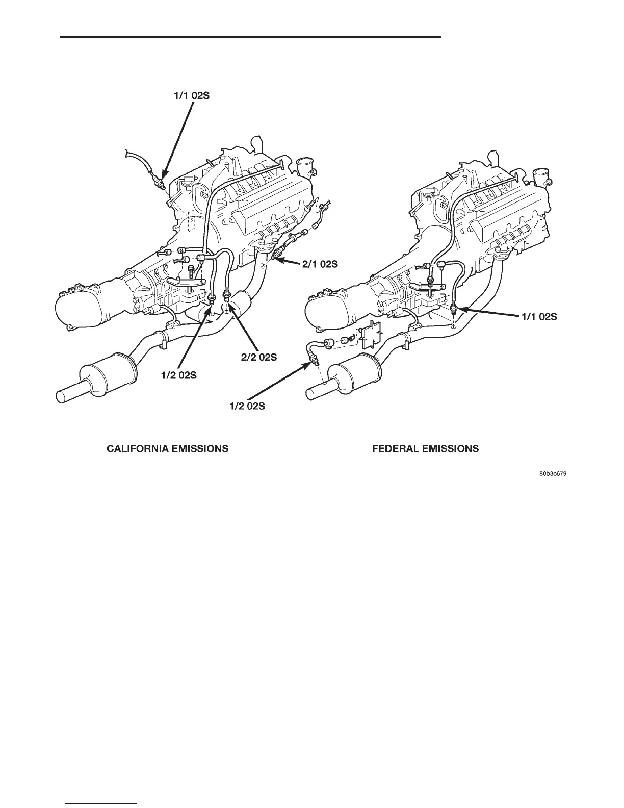 Fig. 32 Oxygen Sensor Locations—4.7L V-8 Engine