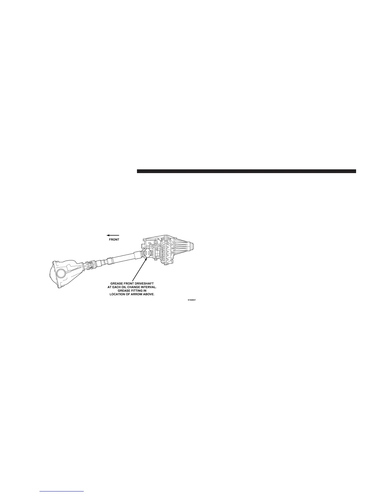 Lubricate the front driveshaft grease fitting at each oil