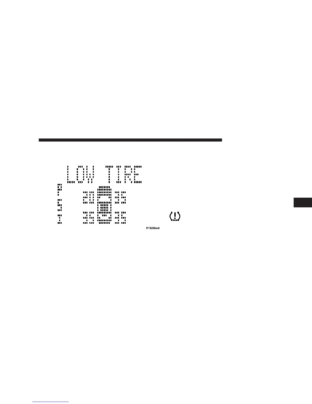 NOTE: A low spare tire will not cause the “Tire Pressure