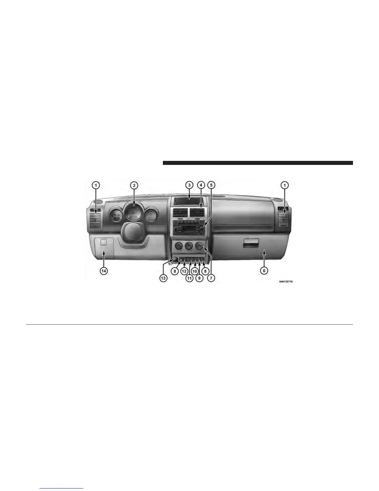 1 — Air Outlet 6 — Glove Compartment 11 — Hazard Warning Flasher