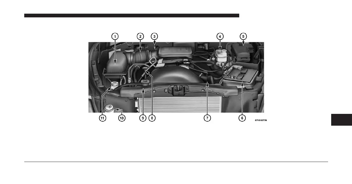 3 — Engine Oil Dipstick 9 — Coolant Pressure Cap