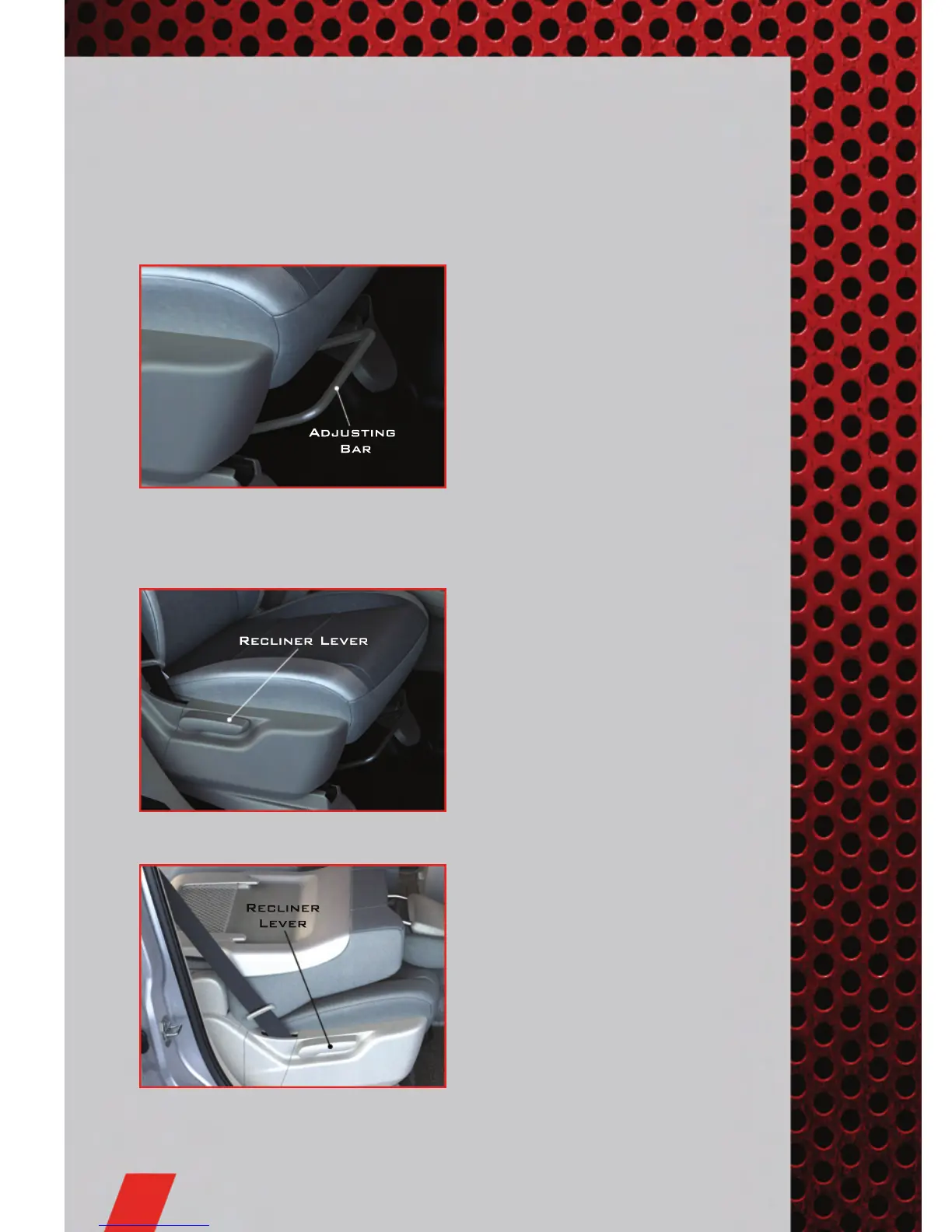 • Lift up on the adjusting bar located at the front of the seat near the floor and