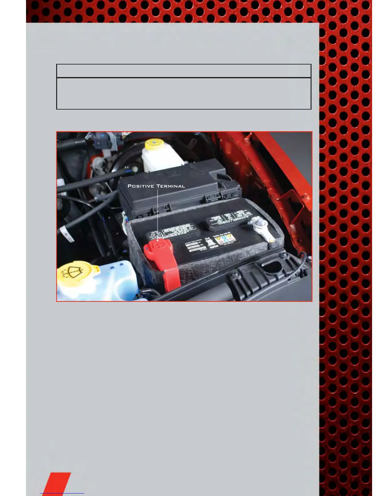 NOTE: The positive battery post is covered with a protective cap. Lift up on the cap to