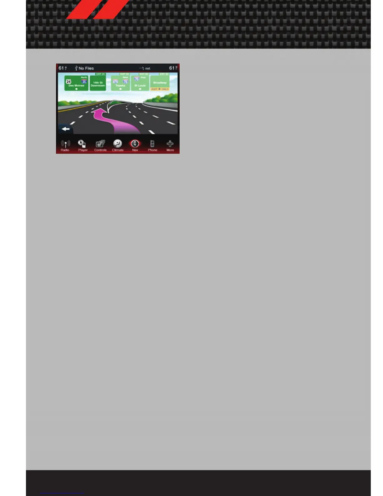 • Touch the NAV soft-key in the menu bar to access the Navigation system and the