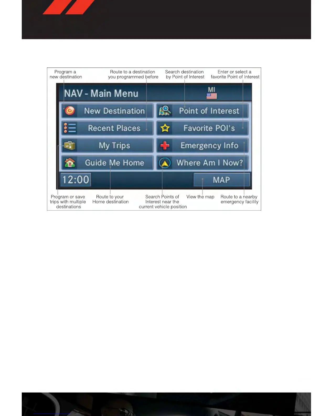 • From the NAV main menu, touch the “Points of Interest” soft-key.