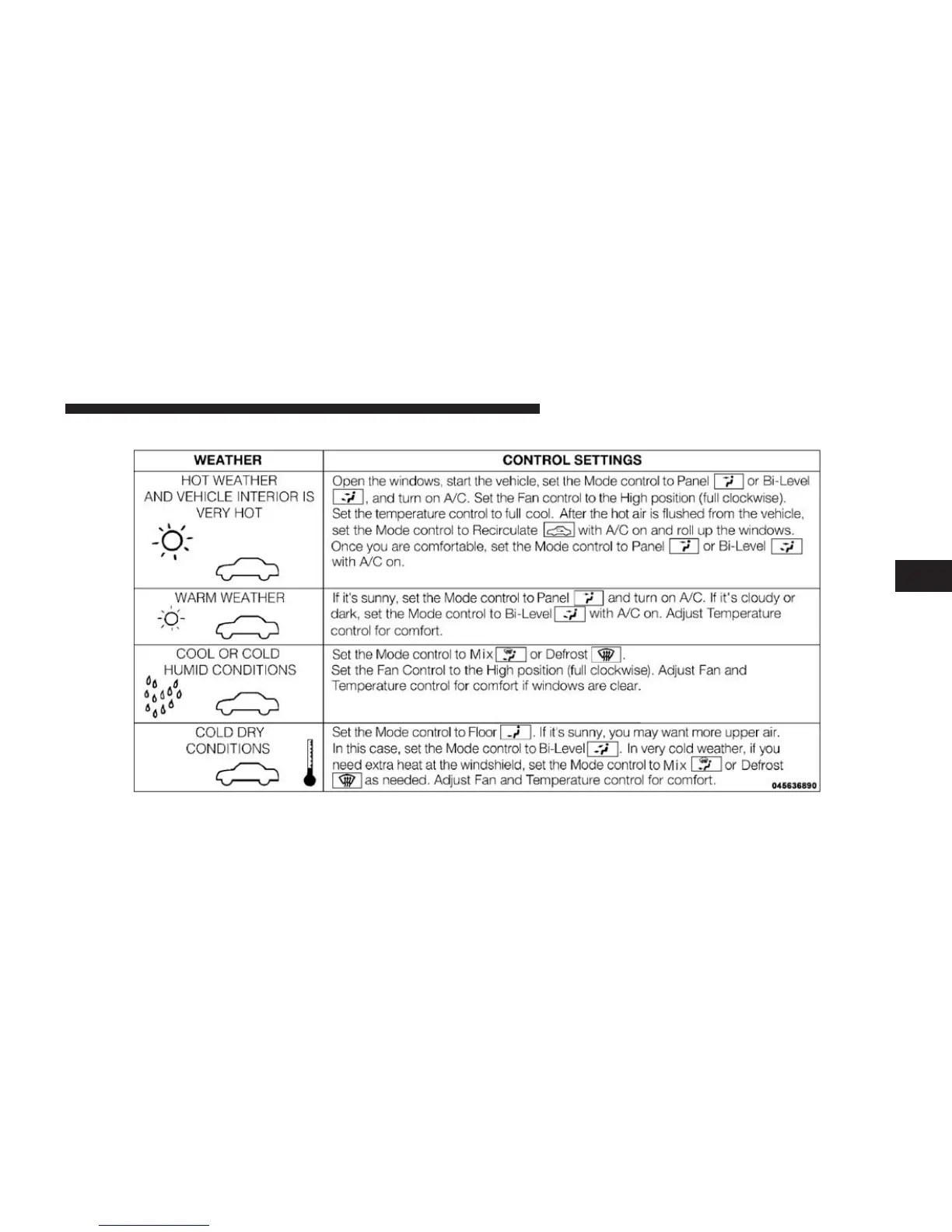 Manual Control Setting Suggestions For Various Weather Conditions