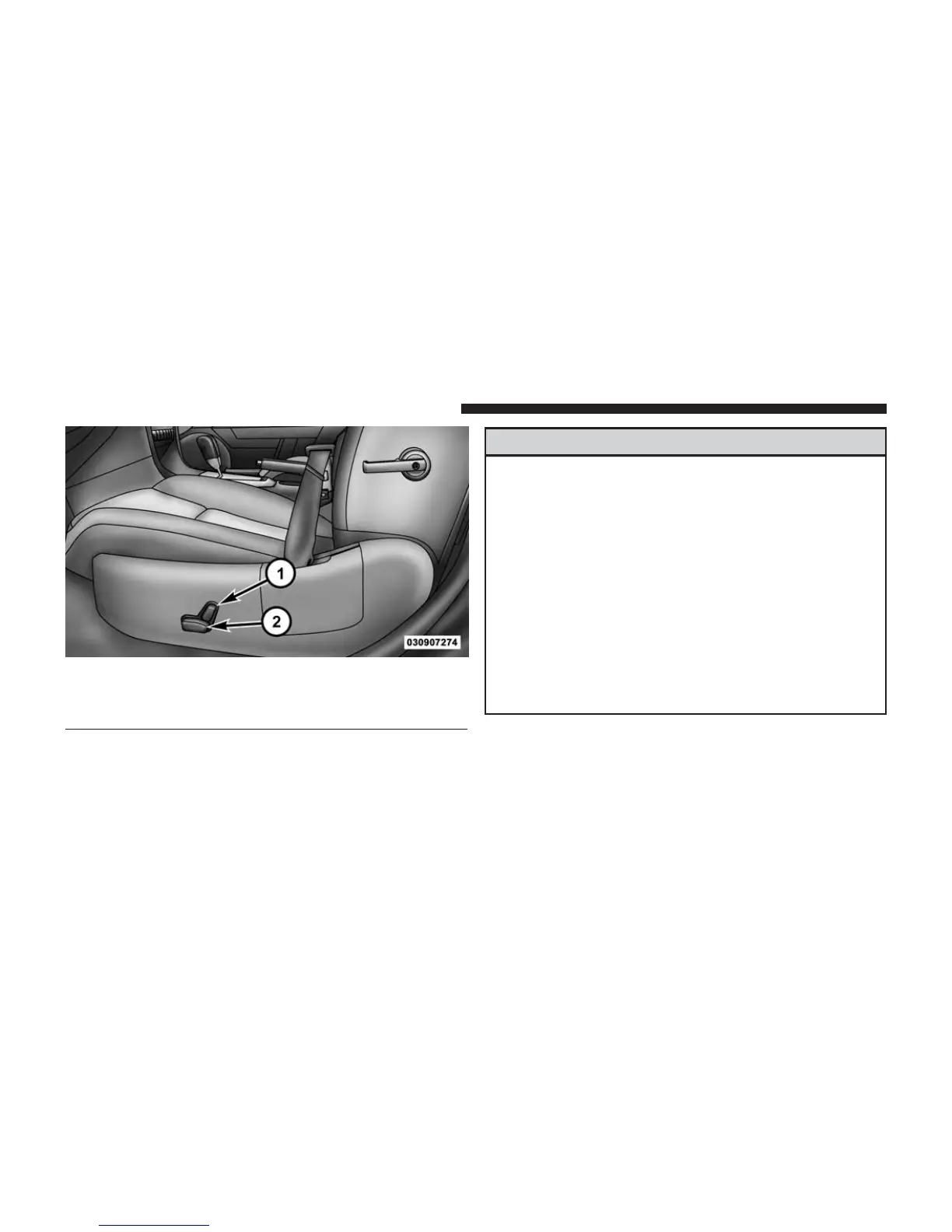 • Adjusting a seat while driving may be dangerous.
