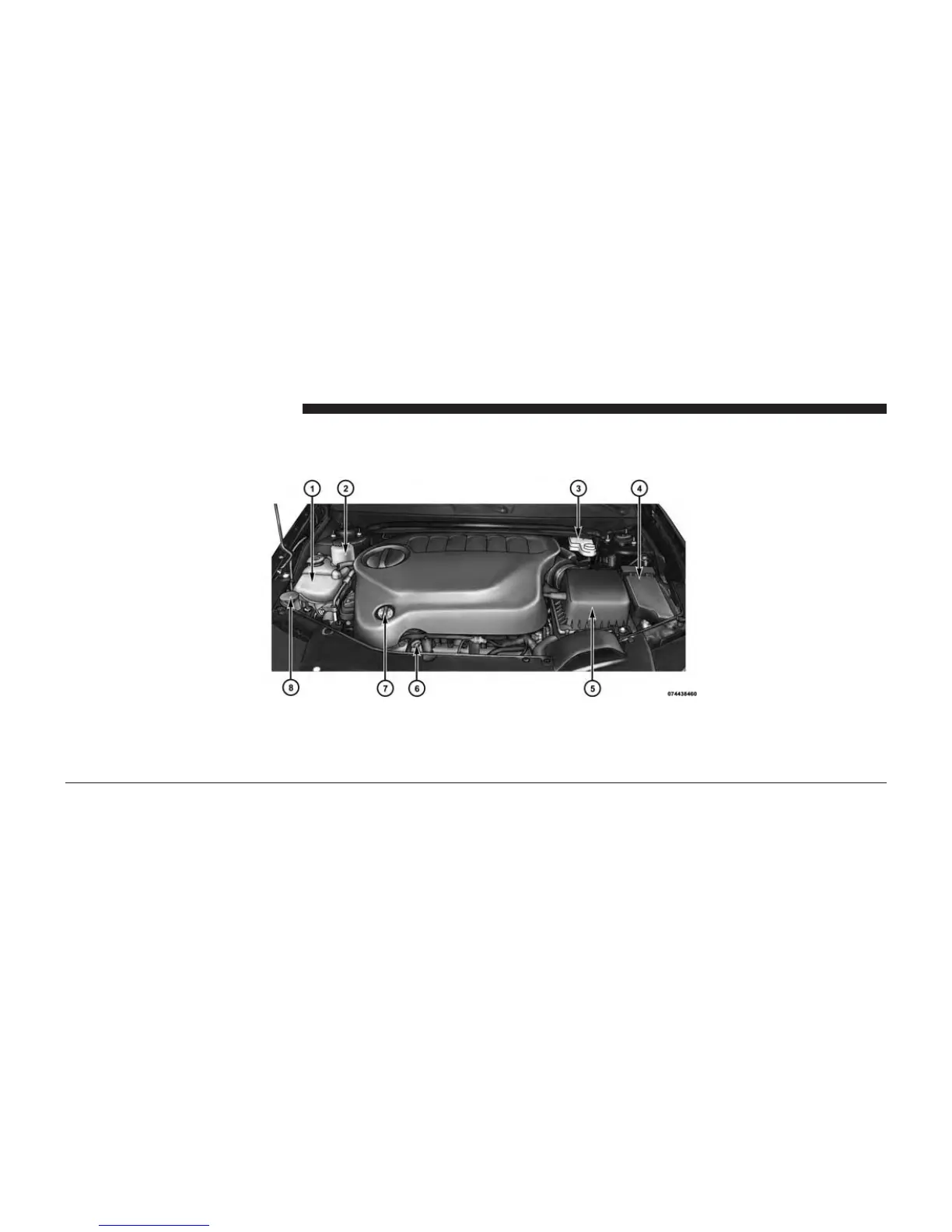 2 — Power Steering Fluid Reservoir 6 — Engine Oil Dipstick