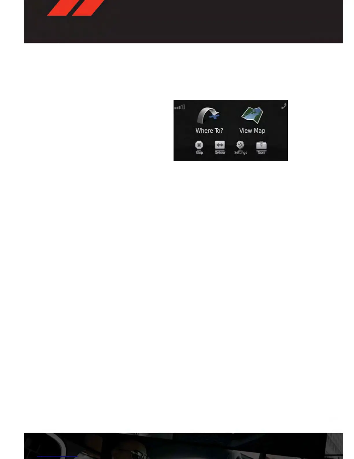 • From the main Navigation menu touch the “Where To?” soft-key, then touch the "Tools"
