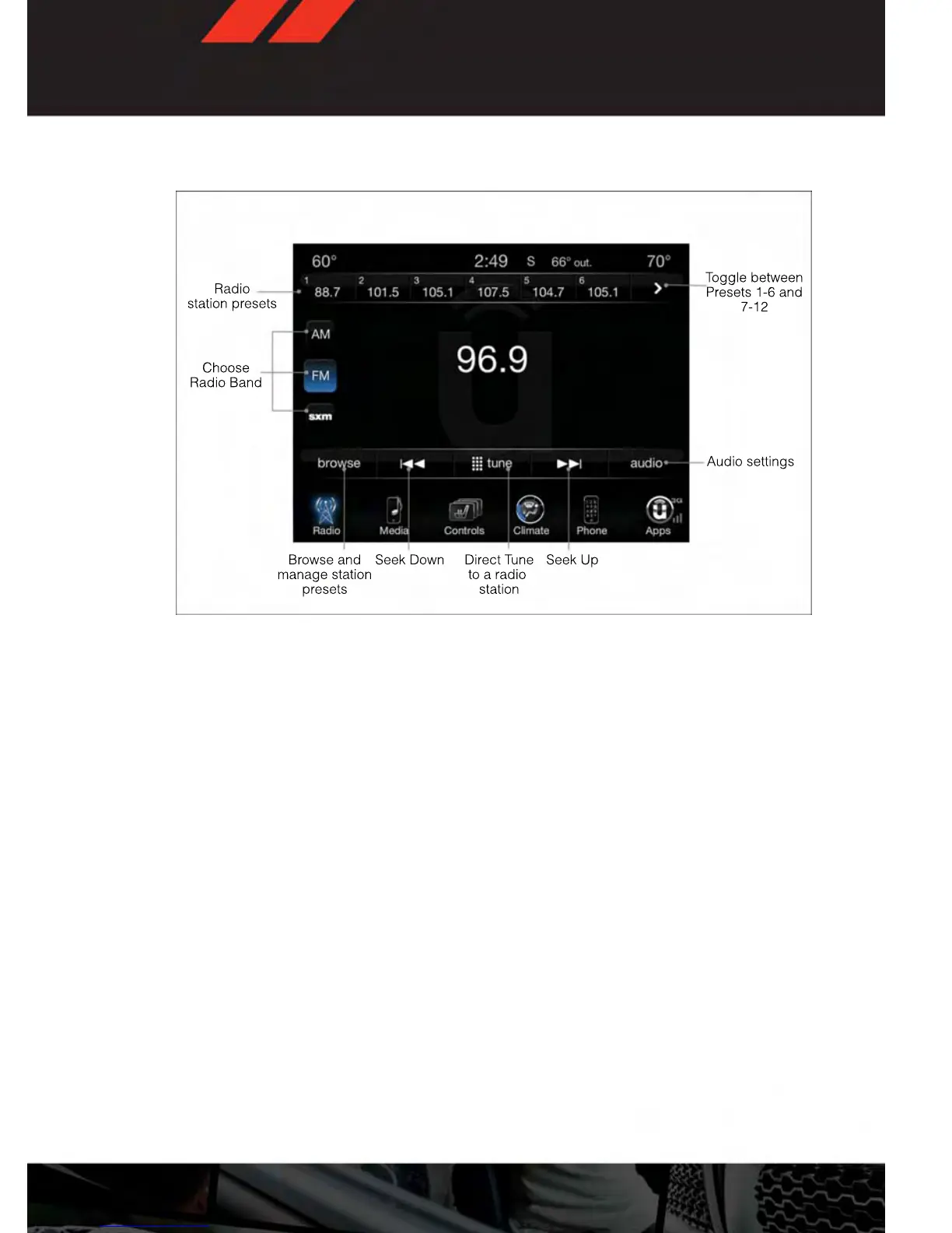 • Tune directly to a radio station by pressing the “Tune” button on the screen, and entering