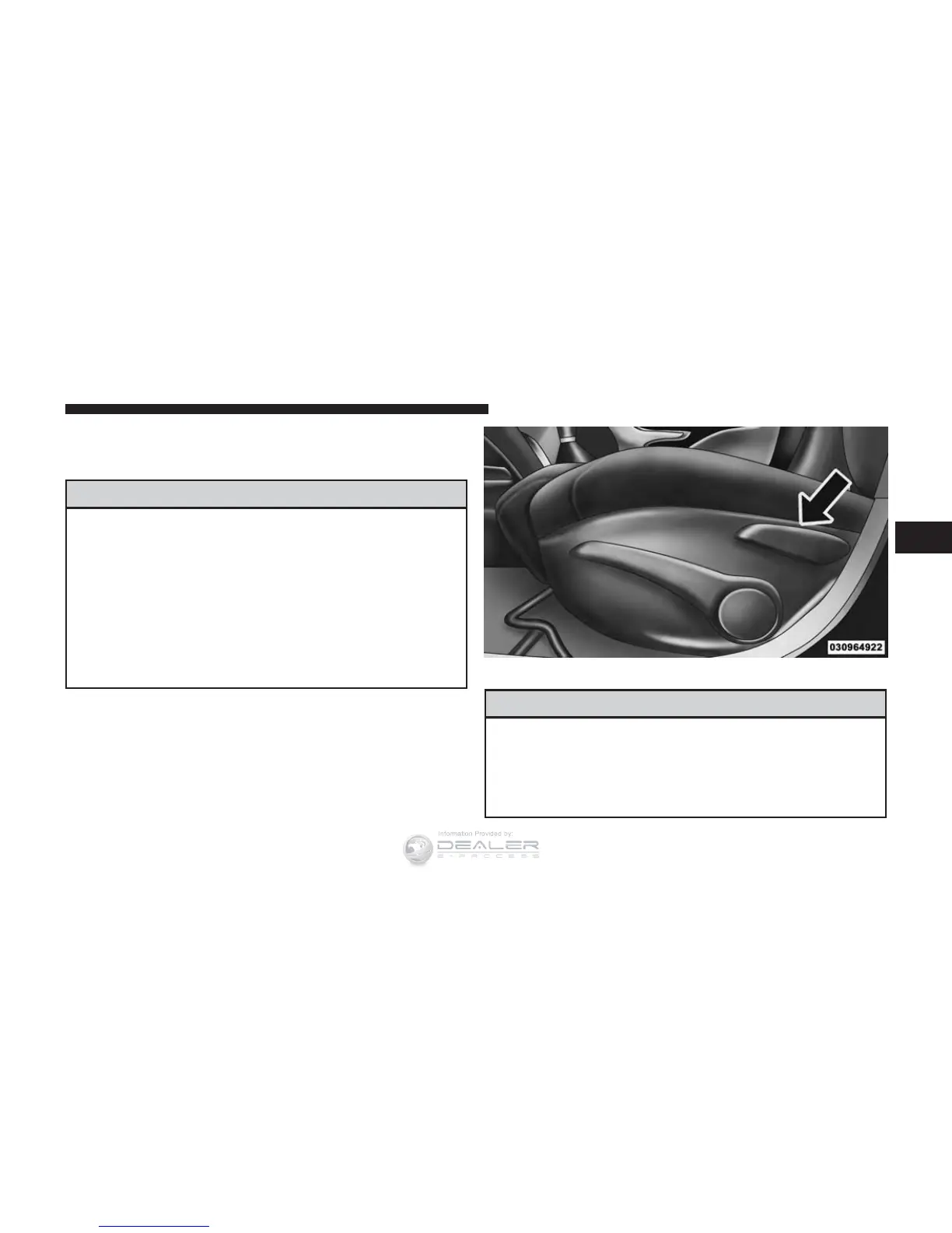 • Adjusting a seat while driving may be dangerous.