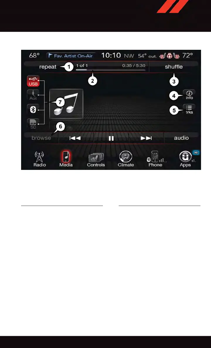 /CD/AUX controls are accessed by pressing the desired button displayed on