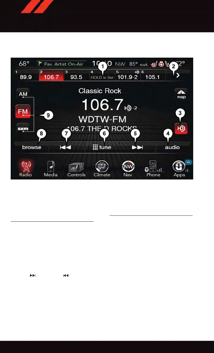• Press the “Radio” button at the lower left of the touchscreen.