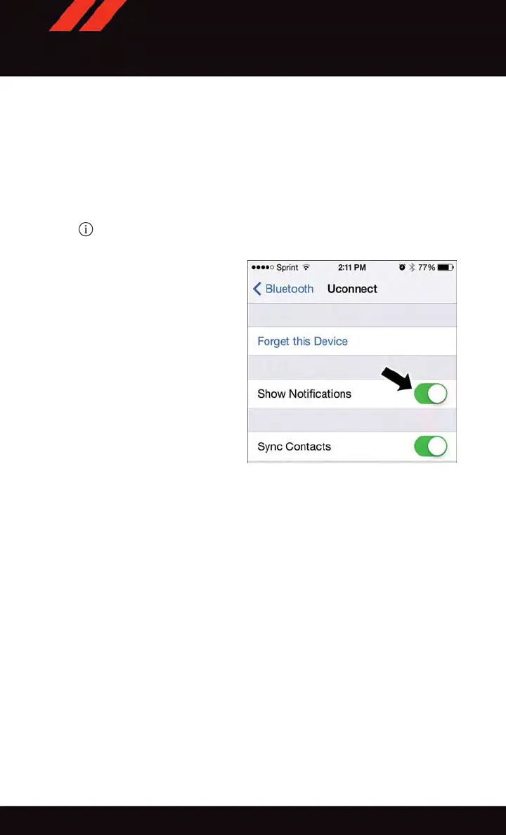 • Ensure Bluetooth is enabled, and the mobile phone is paired to the Uconnect