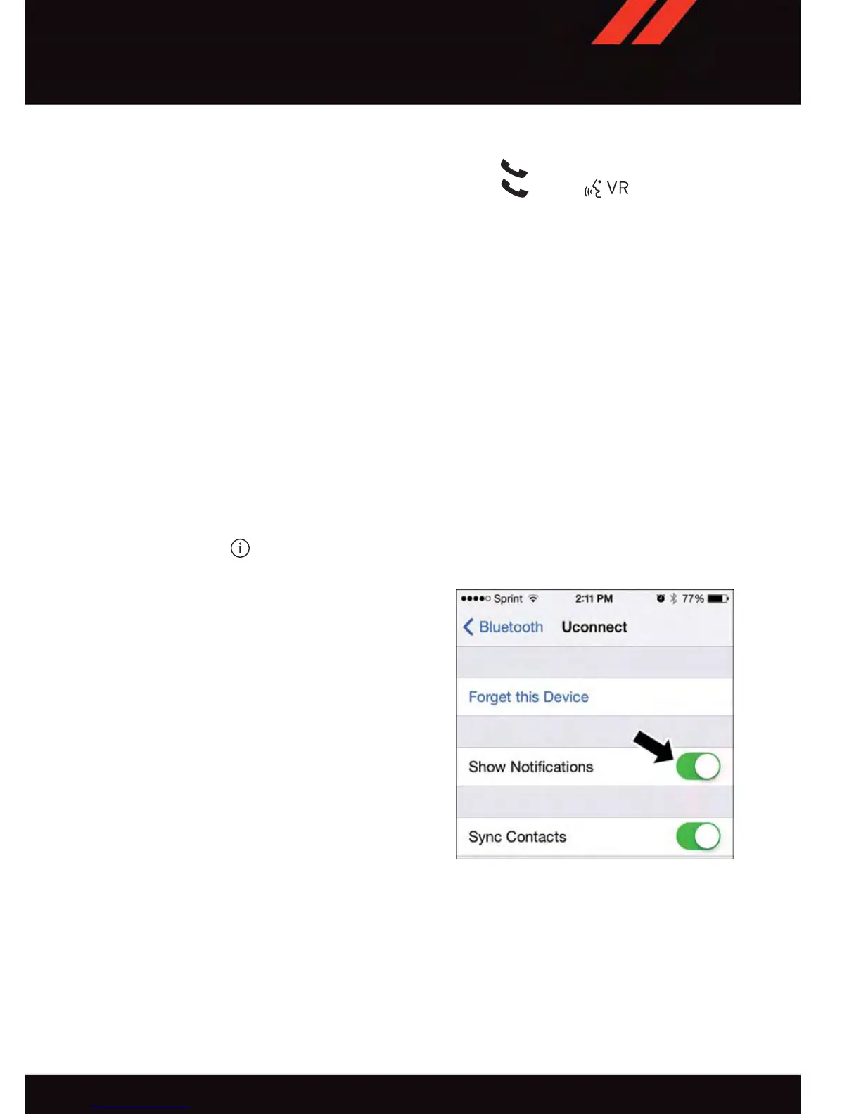• Ensure Bluetooth is enabled, and the mobile phone is paired to the Uconnect