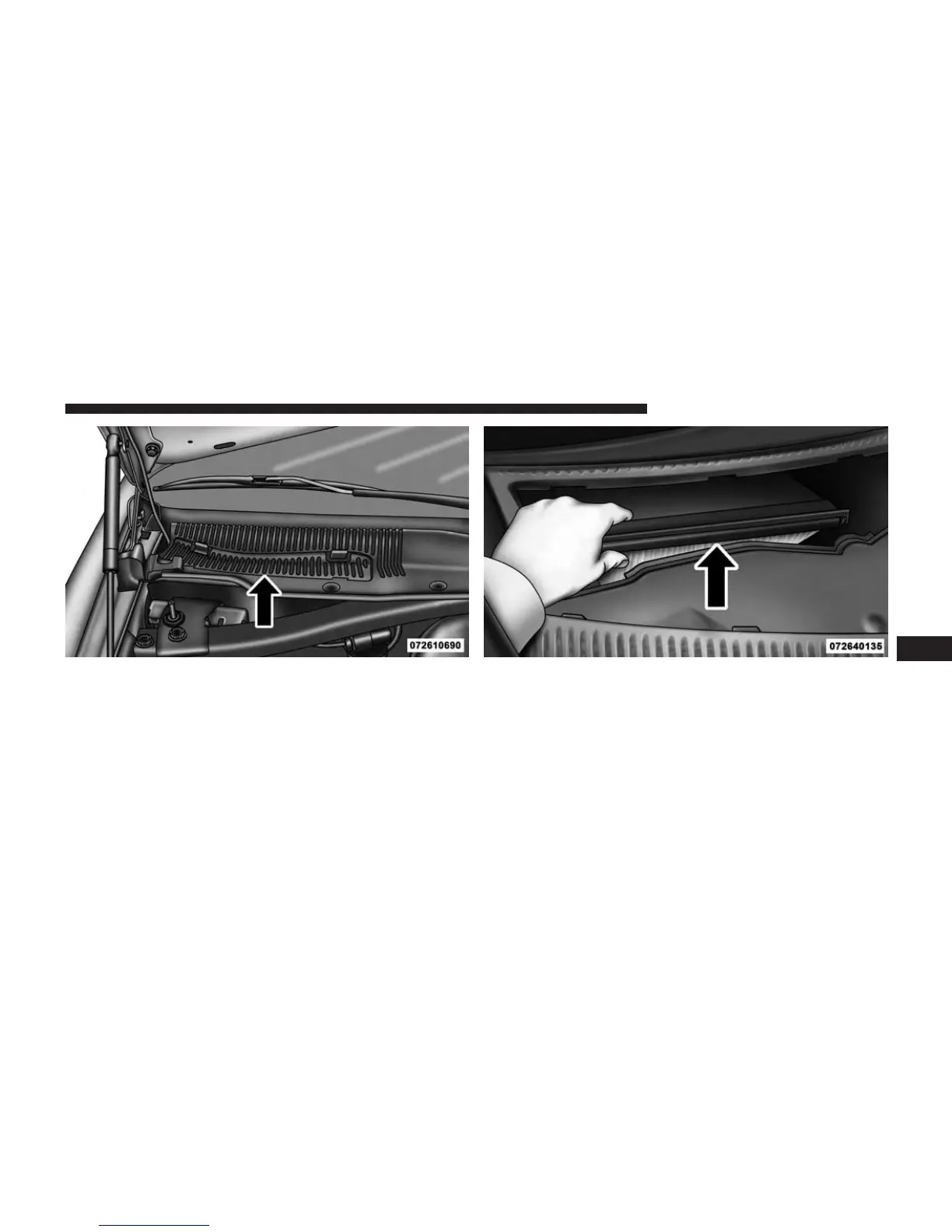 2. Unsnap both ends and lift the filter access cover. 3. Remove the used filter.
