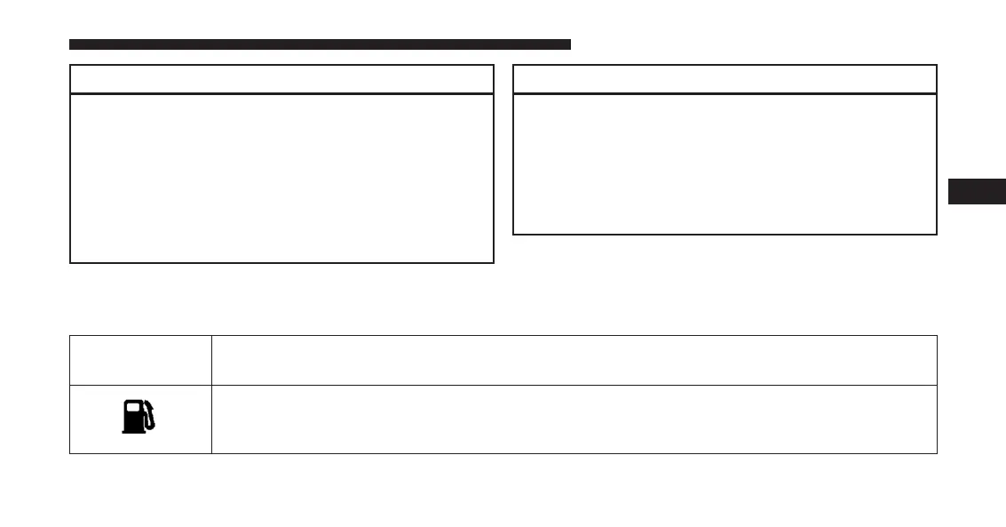 When the fuel level reaches approximately 1.5 gal (5.8 L) this light will turn on, and remain