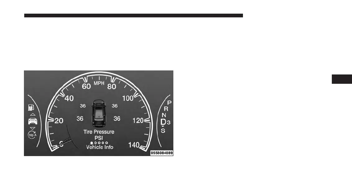 (DID), and a graphic displaying tire pressures