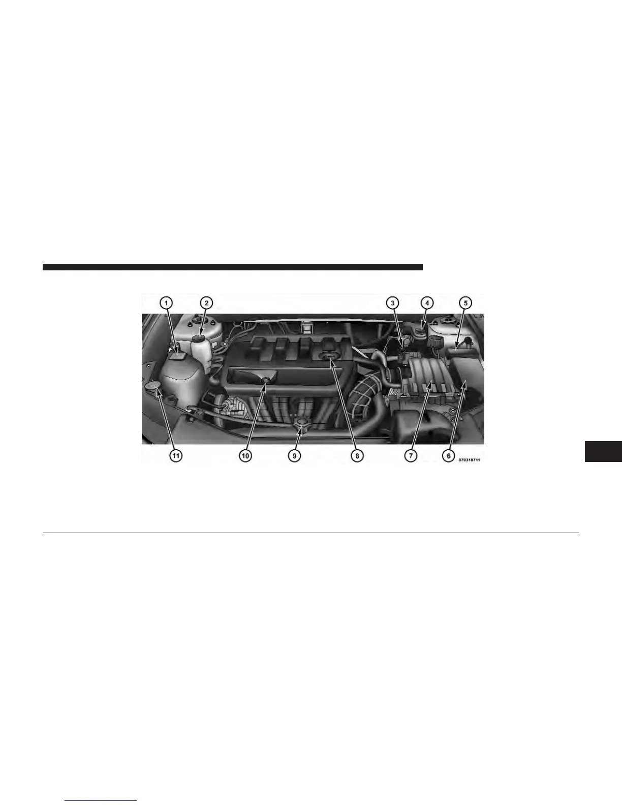 3 — Automatic Transmission Dipstick 9 — Coolant Pressure Cap