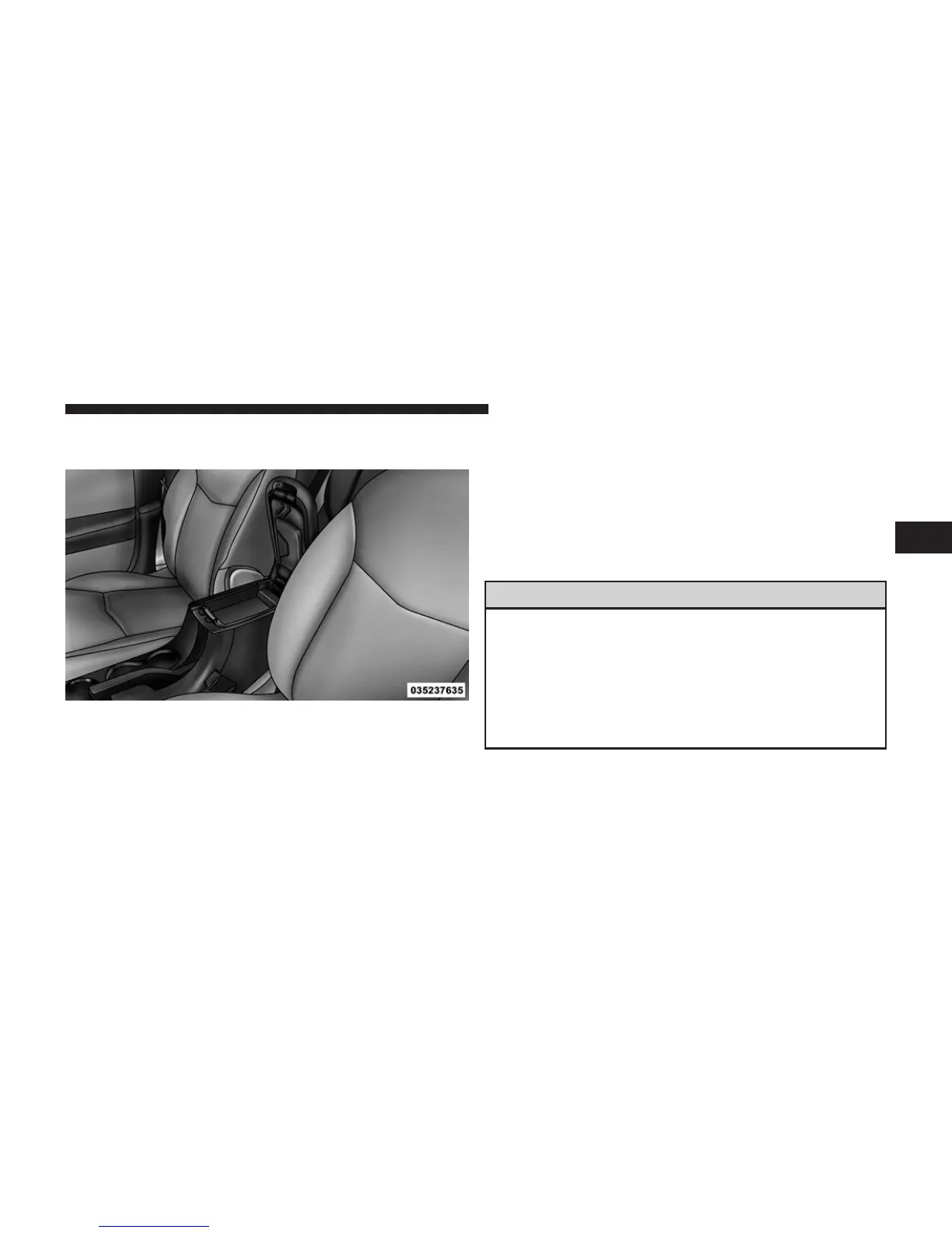 12 Volt power outlet. The console’s front opening lid allows