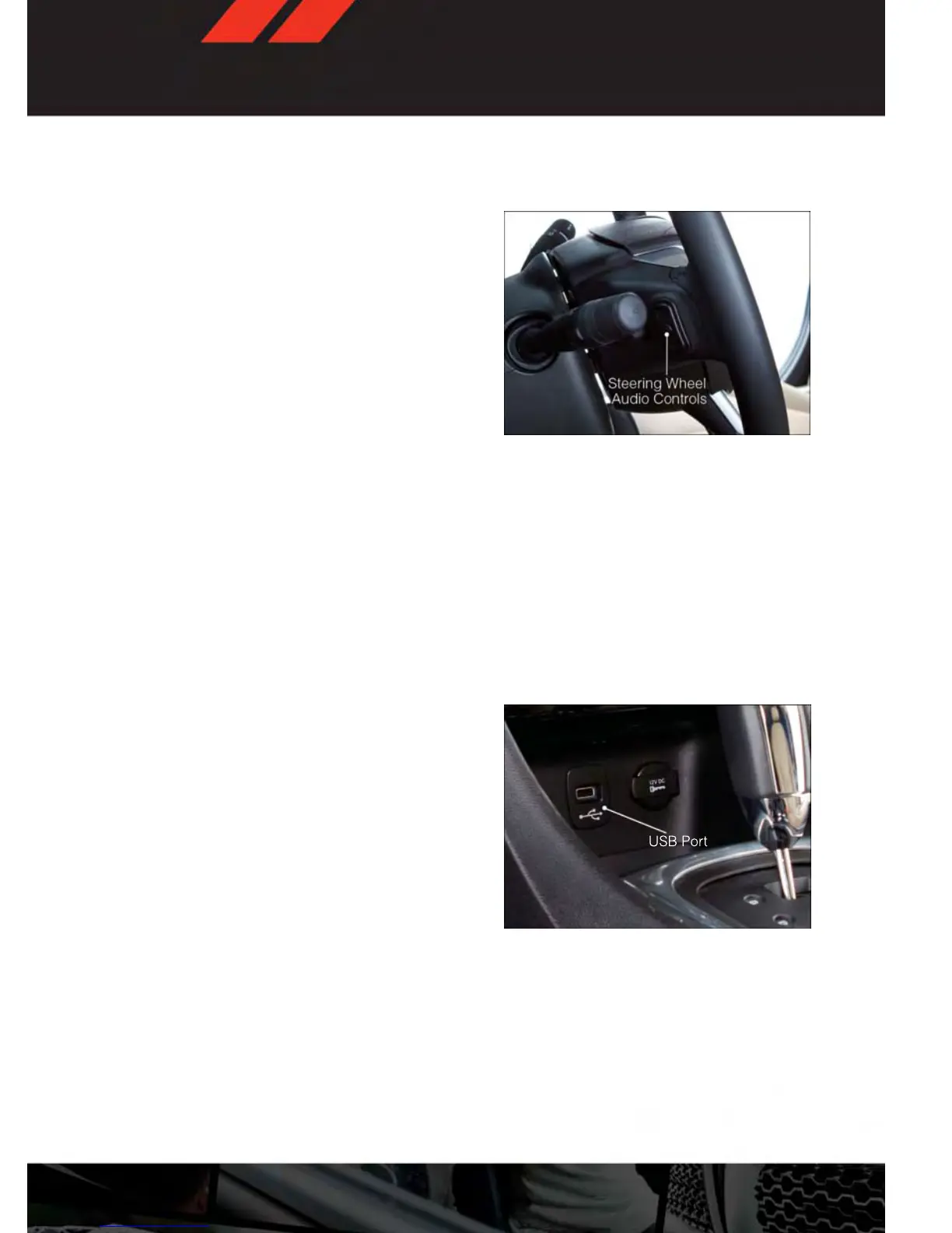 • The remote USB port, located within the front storage area, allows you to plug an iPod®