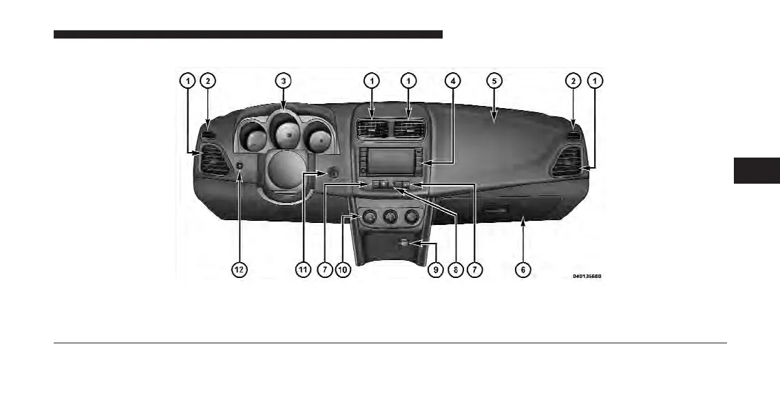 1 — Air Outlet 5 — Passenger Airbag 9 — Power Outlet