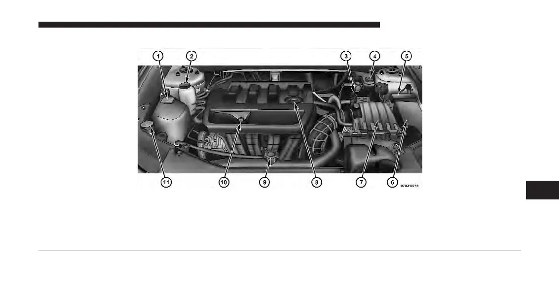 3 — Automatic Transmission Dipstick 9 — Coolant Pressure Cap