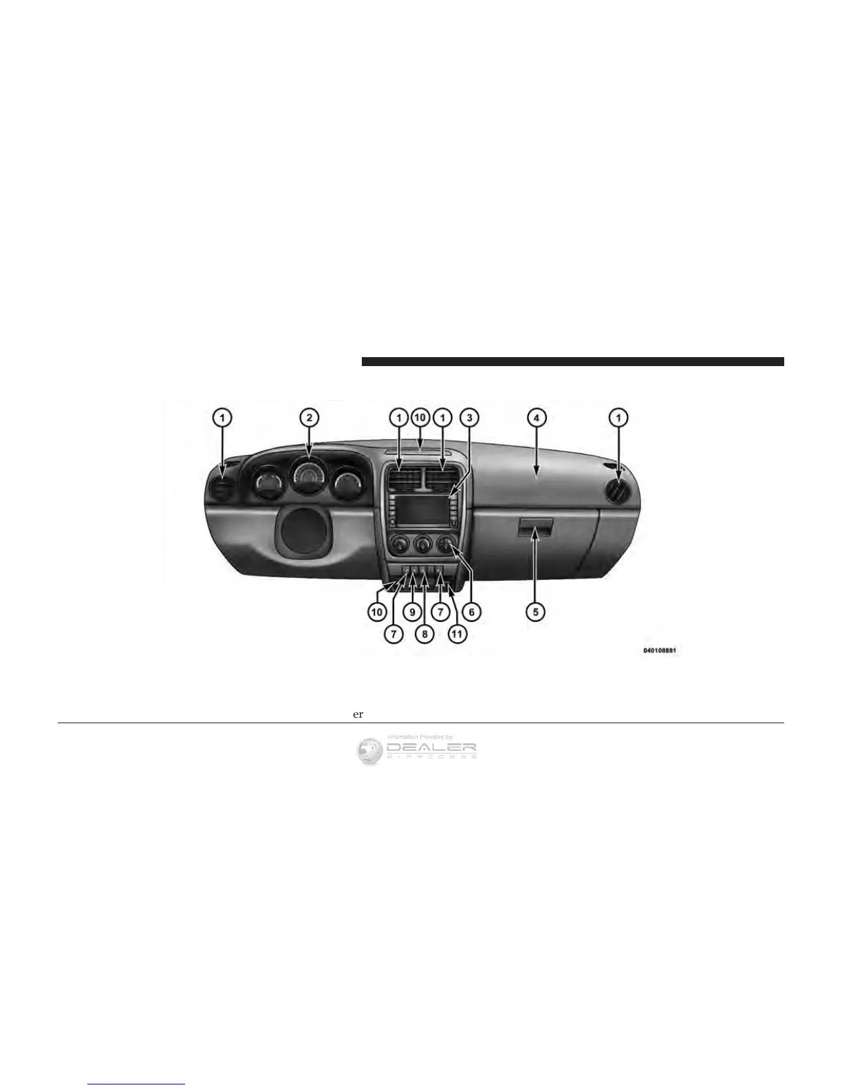 3 — Radio 7 — Heated Seat Switches – If Equipped 11 — Power Outlet