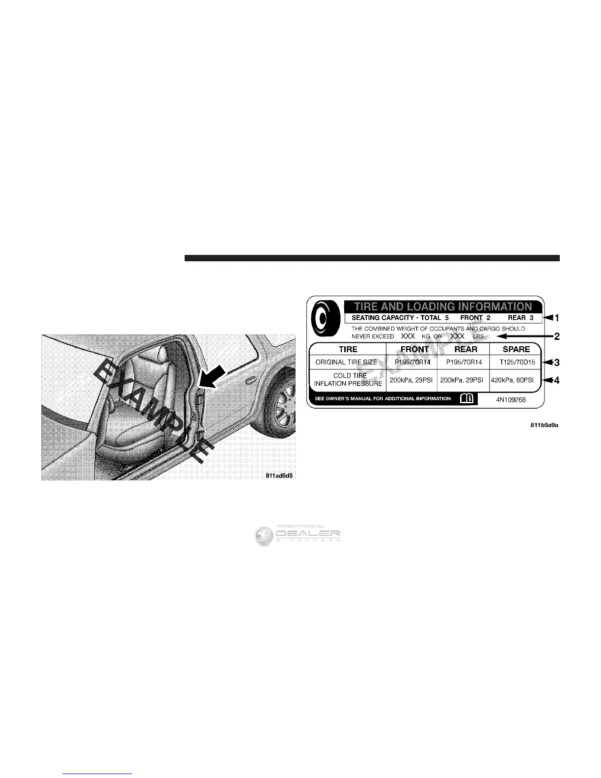 NOTE: The proper cold tire inflation pressure is listed