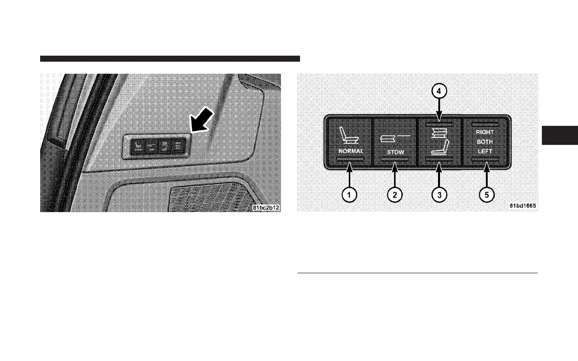 1 — Opens seats to NORMAL seating position