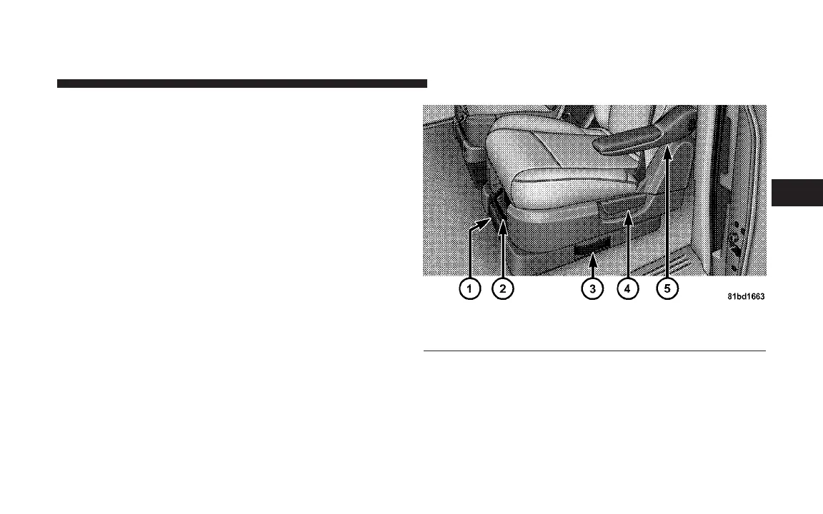 2 - Fore-Aft Adjustment Lever 5 - Moveable Armrest