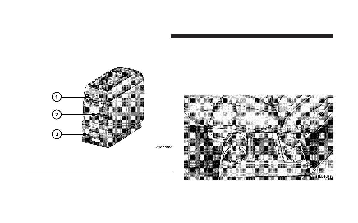 2 - Release to slide the center storage bin rearward.