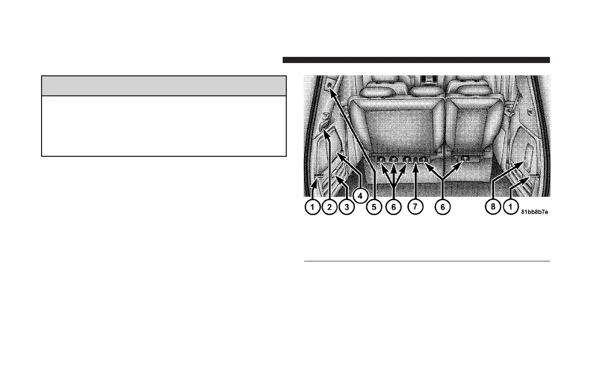 3 - Tire Jack/Handle Storage 7 - Child Seat LATCH Anchor