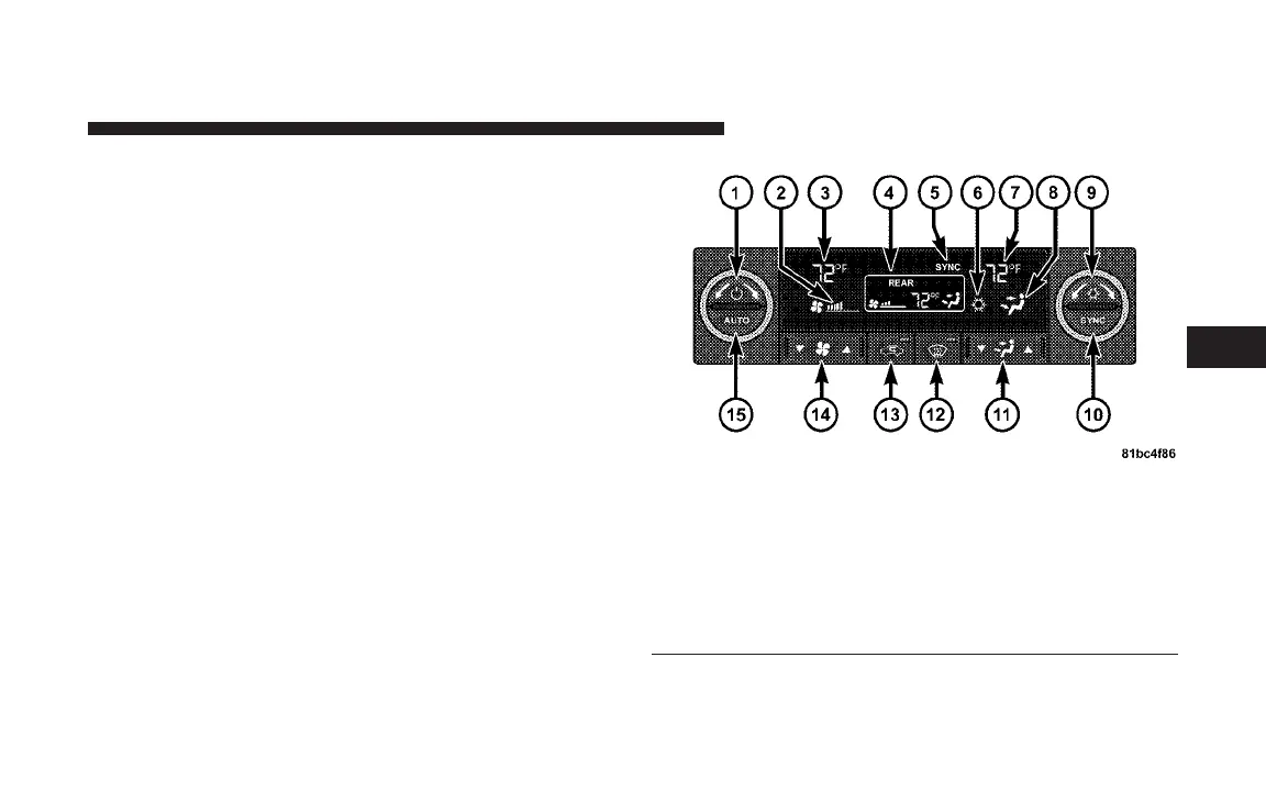 4 - Rear Blower Speed, Temp, Mode 12 - Windshield Defrost