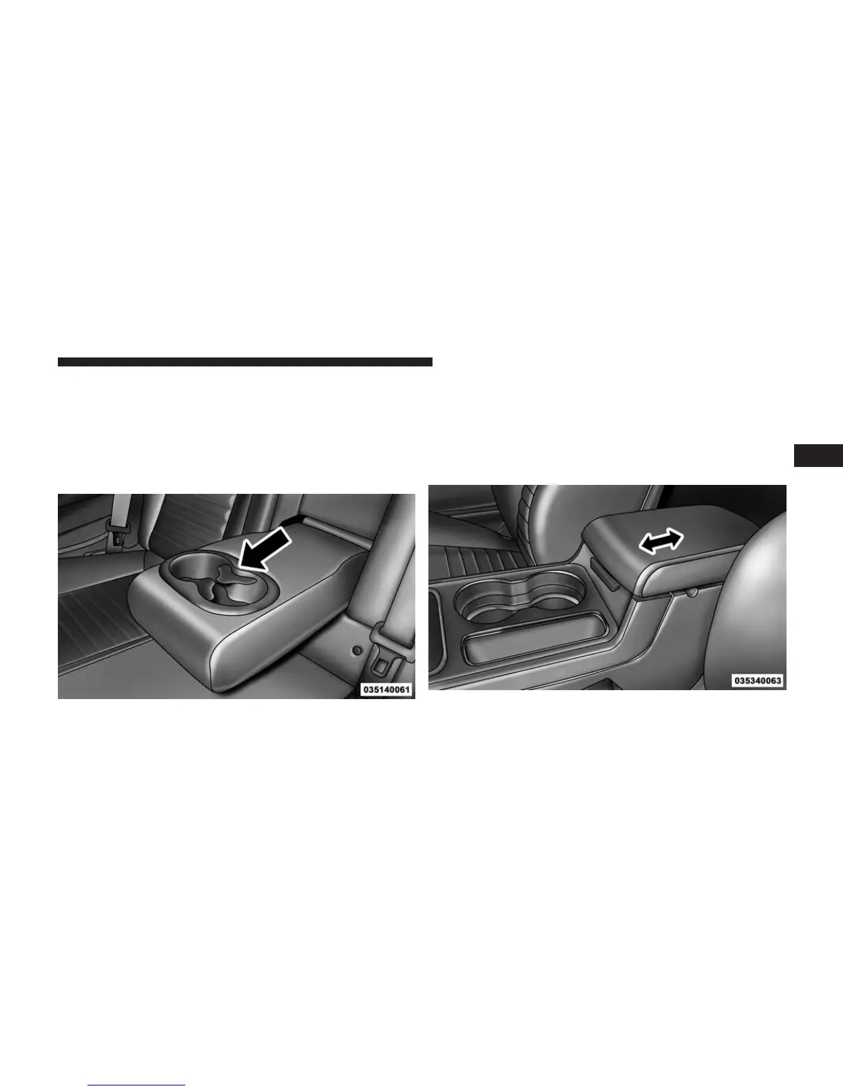 The center console armrest slides forward with three