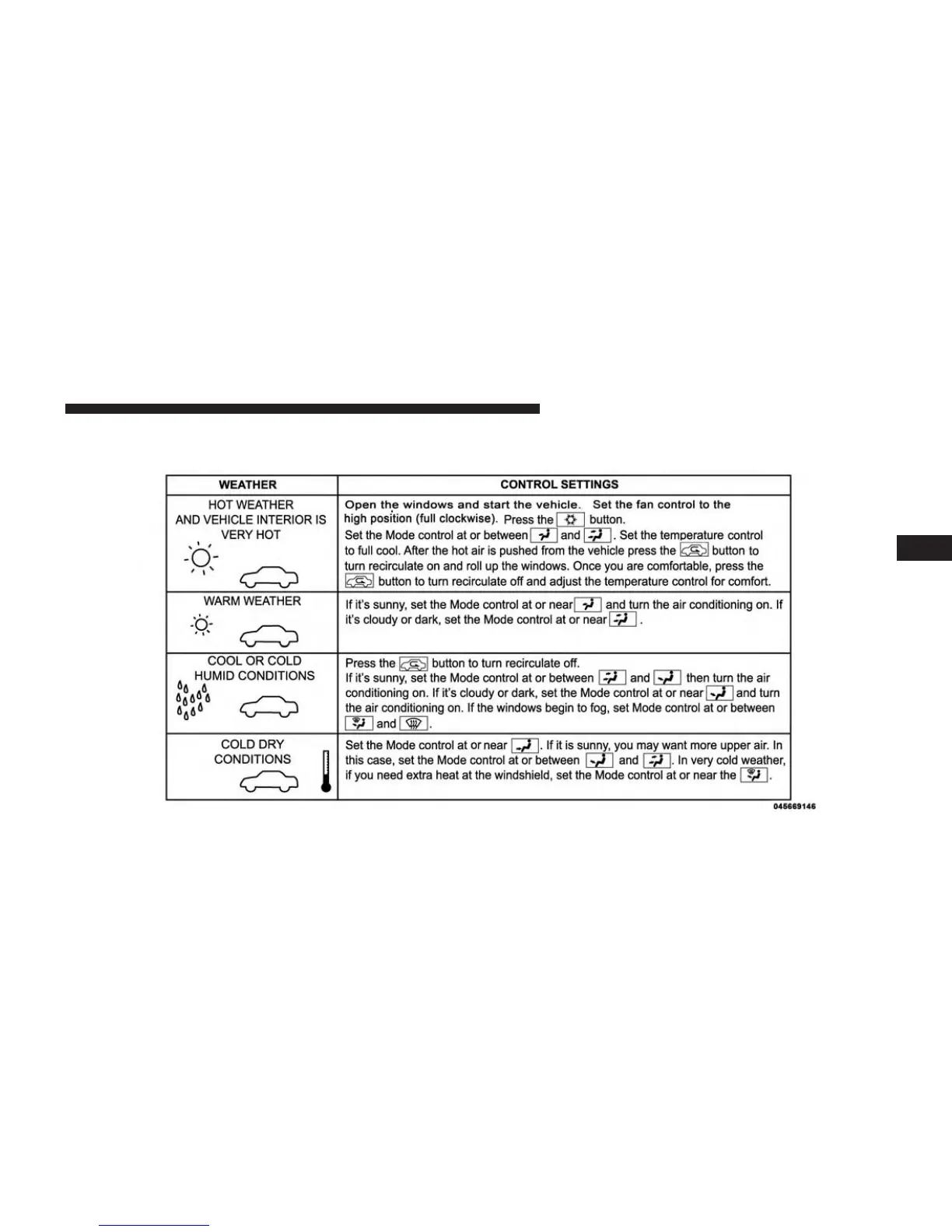 Control Setting Suggestions For Various Weather Conditions While In Manual Override