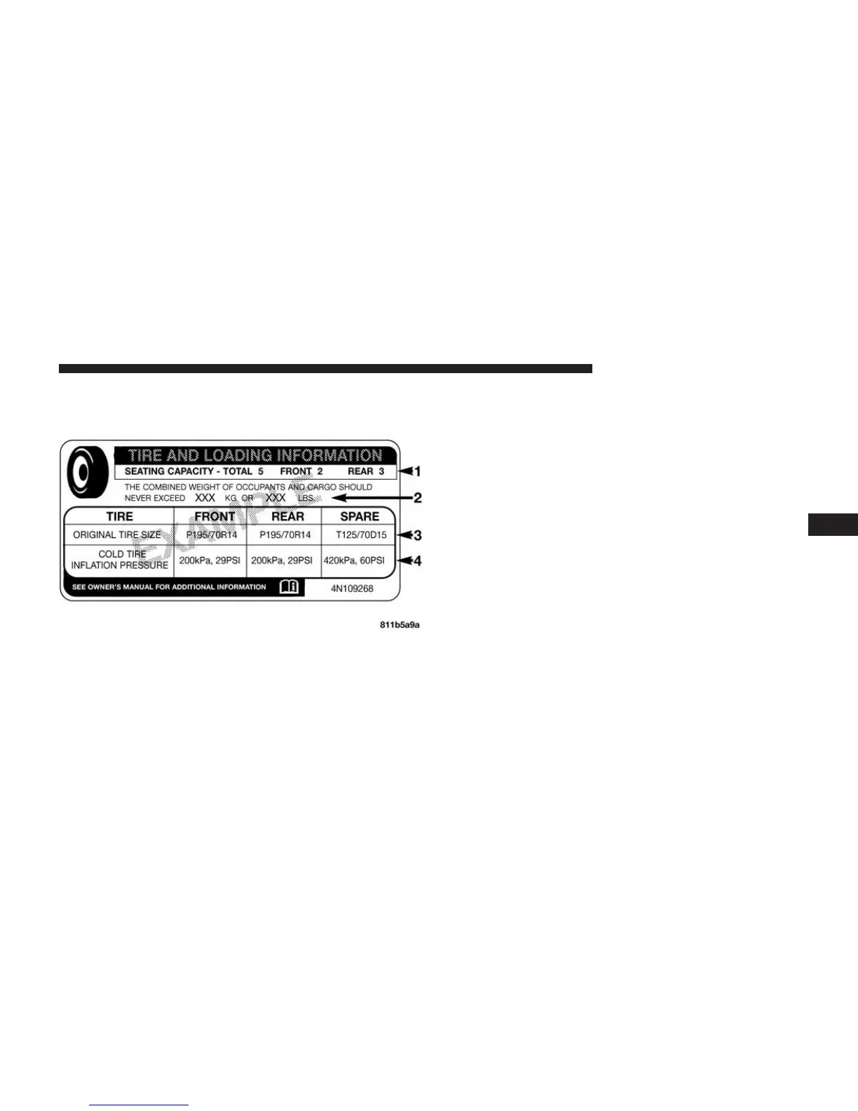 4. Cold tire inflation pressures for the front, rear, and