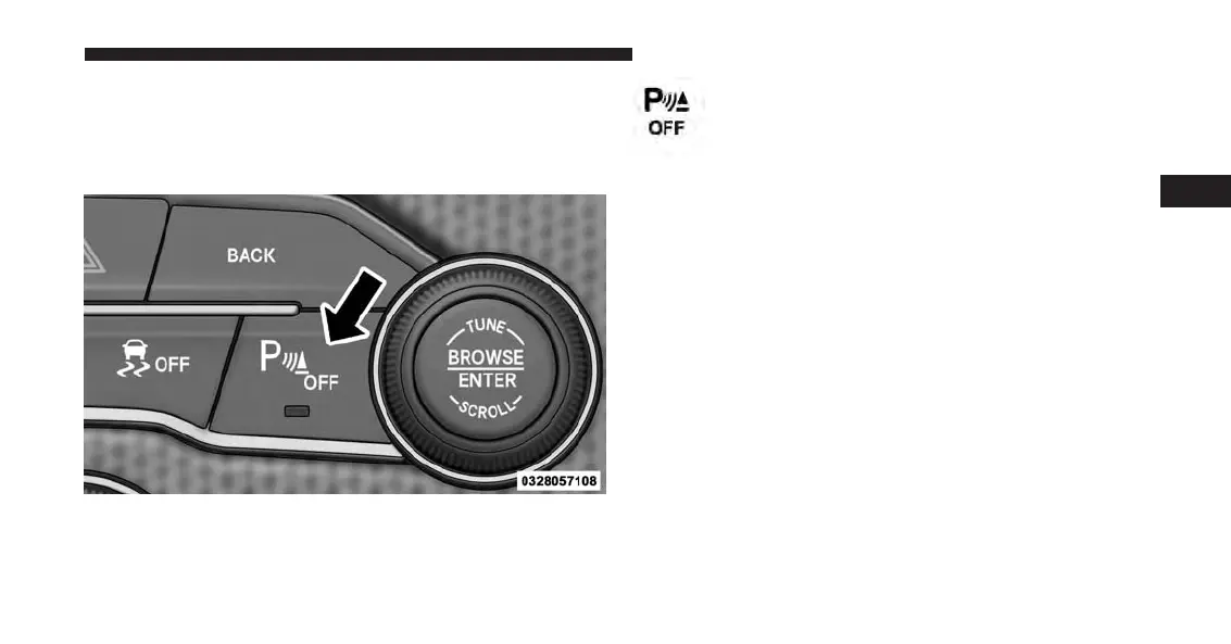 the ParkSense switch is pushed and the system is dis-