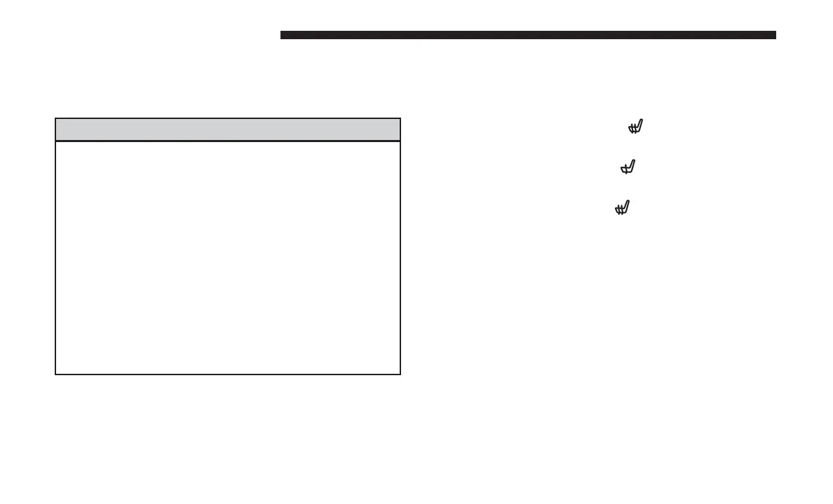 • The engine must be running for the heated seats to