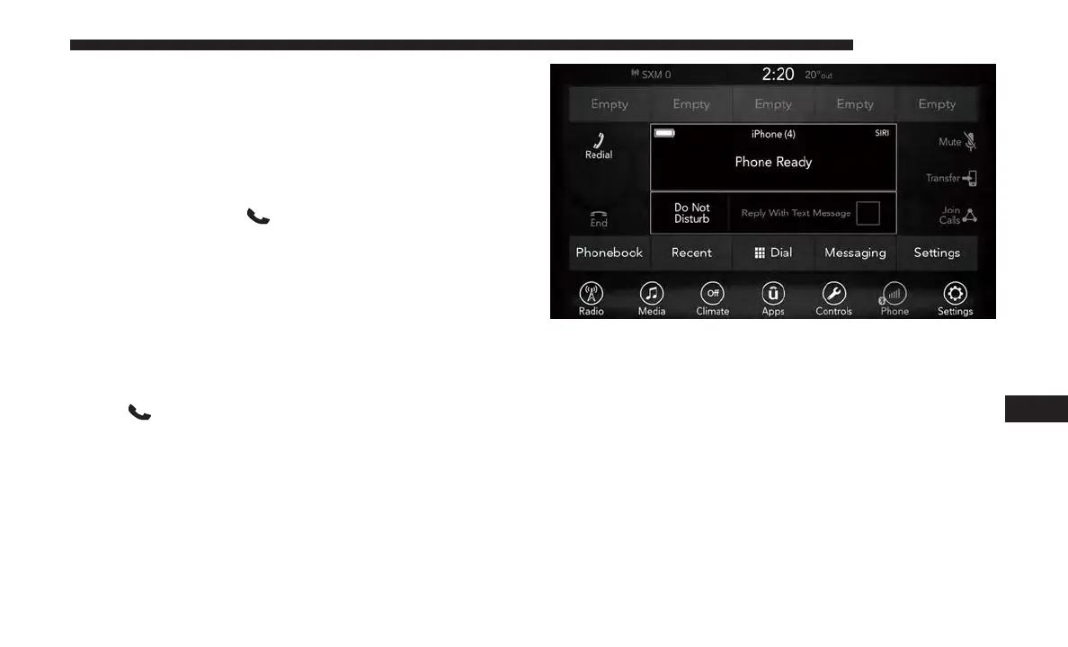 Uconnect. When the Phonebook button is illuminated on