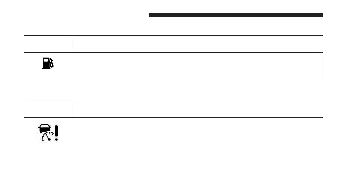 When the fuel level reaches approximately 2 gal (7.5 L) this light will turn on, and remain
